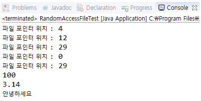 System.out.println("ํ์ผ ํฌ์ธํฐ ์์น : " + rf.getFilePointer()); // ํ์ผ ํฌ์ธํฐ ์์น๋ฅผ ๋ฐํํ๋ ๋ฉ์๋