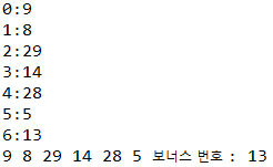 System.out.println("๋ณด๋์ค ๋ฒํธ : " + lotto[i]);