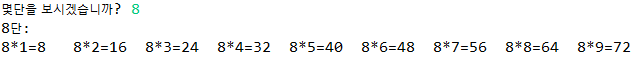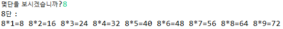 System.out.print("๋ช๋จ์ ๋ณด์๊ฒ ์ต๋๊น? ");