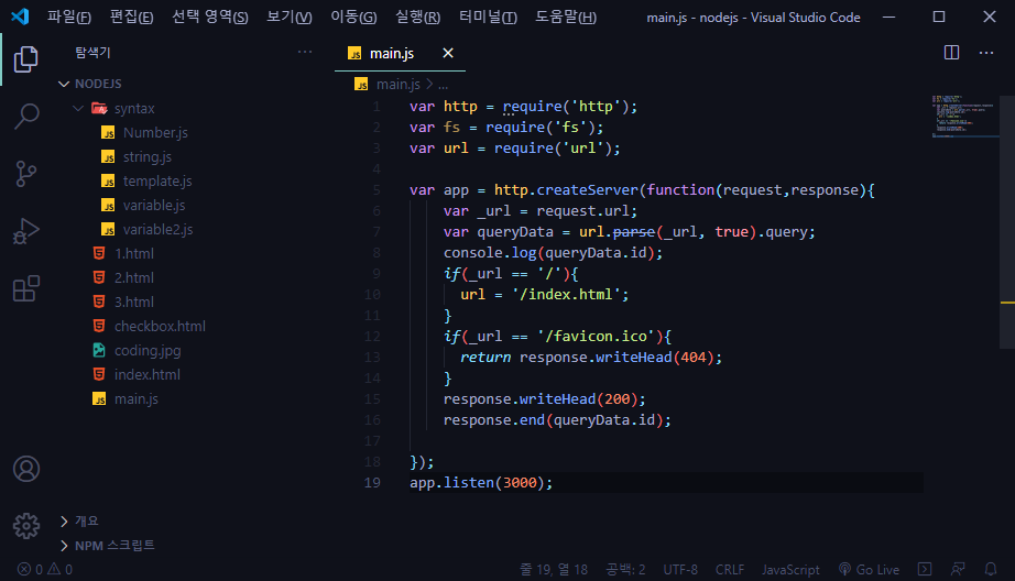 | [Node.js-์ํ์ฝ๋ฉ] Node.js์ ํ์ผ ์ฝ๊ธฐ ๊ธฐ๋ฅ (0) | 2021.01.26 |