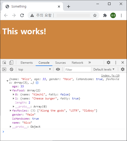 -Object와 Array의 다른 점은 Object에는 각 value에 이름을 줄 수 있다는 것이다