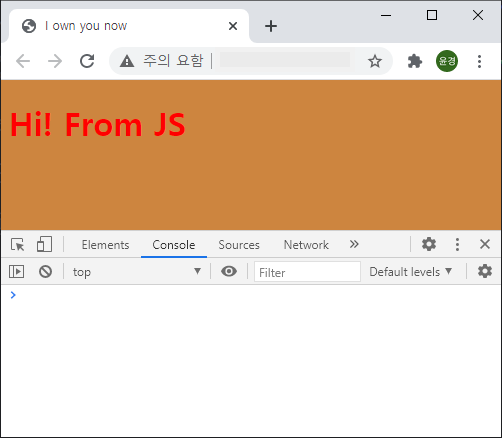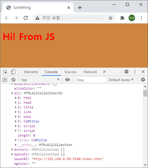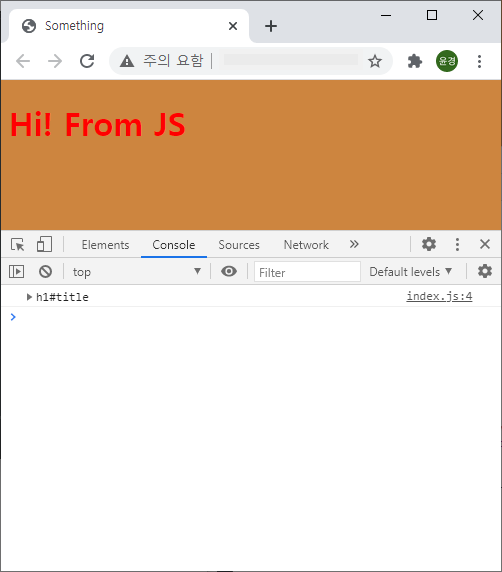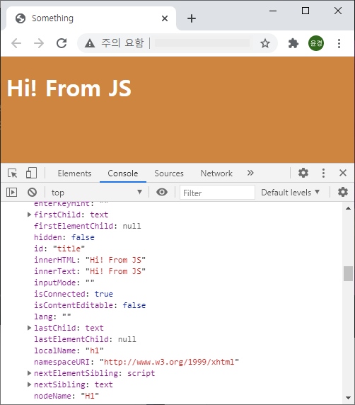 title.innerHTML = "Hi! From JS";