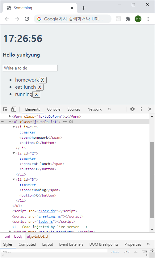 -local storage에서 불러온 것을 화면에 출력하기