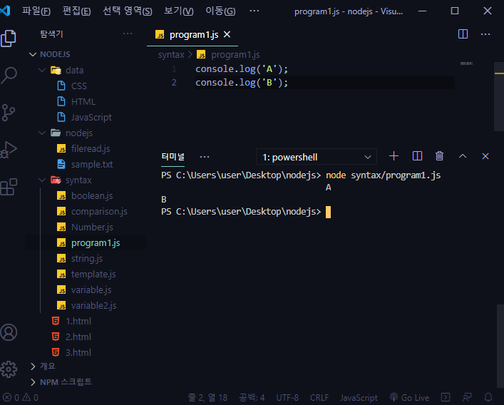 | [Node.js-์ํ์ฝ๋ฉ] Console์์์ ์ ๋ ฅ๊ฐ (0) | 2021.01.26 |