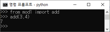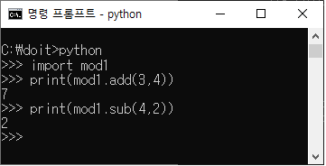 mod1.py๋ฅผ ๋ถ๋ฌ์ค๊ธฐ์ํด import mod1์ด๋ผ๊ณ ์ ๋ ฅํ๋ค.