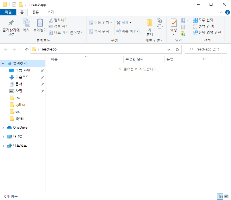 2. react-app์ด๋ผ๋ ํด๋๋ฅผ ์์ฑํ๋ค.