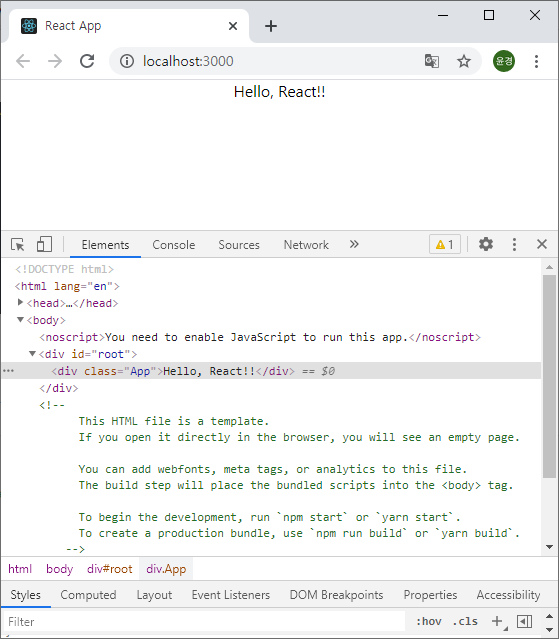 ๊ทธ๋ฆฌ๊ณ ์ฐ๋ฆฌ๊ฐ App.js ์์ ๋ด์ฉ์ ๋ฐ๊พธ๋ฉด ๋ฐ๋ก reload๋๋ฉด์ ์ ์ฉ์ด ๋๋ค.