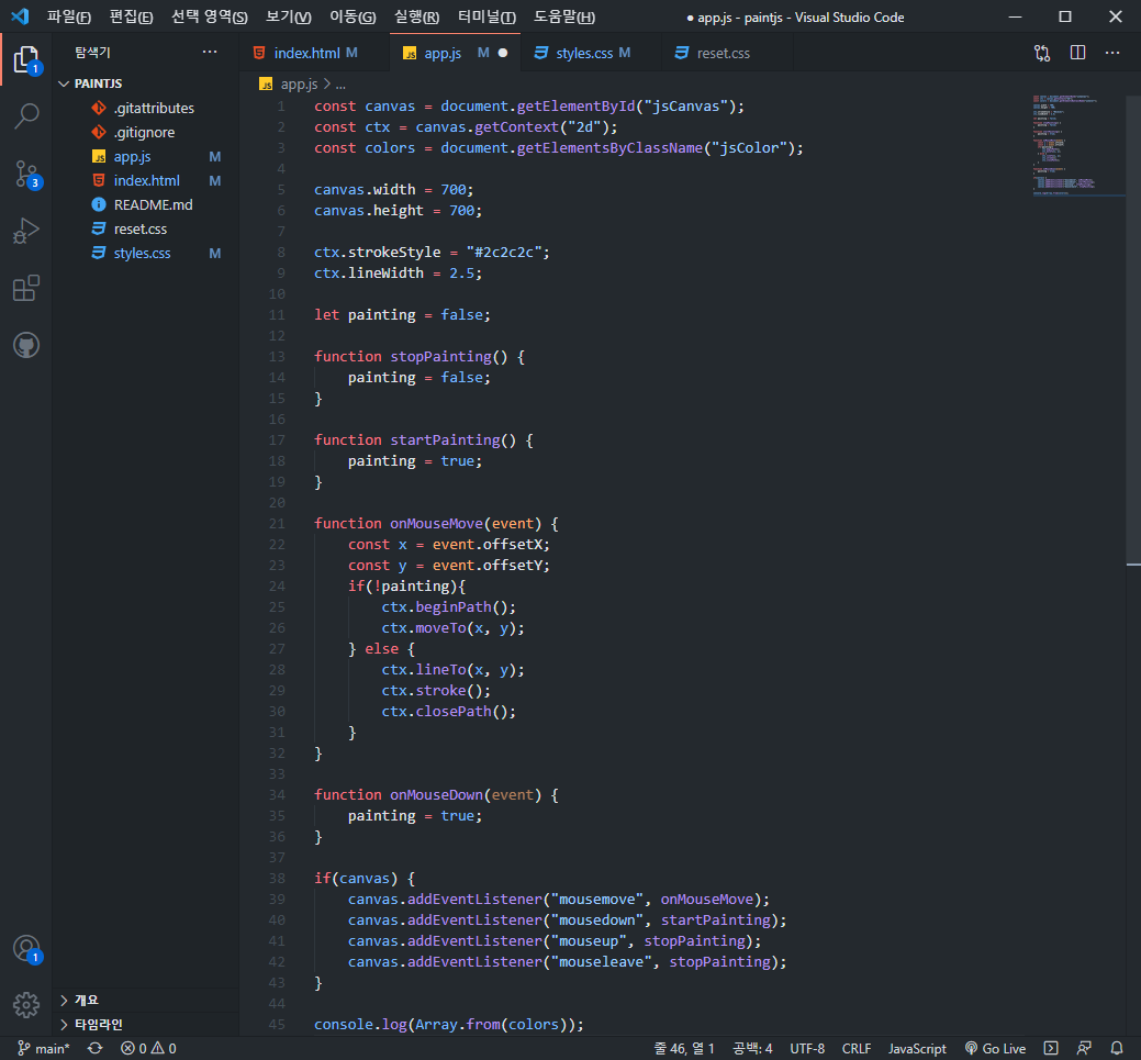 ๊ทธ๋ฆฌ๊ณ ์ง๊ธ์ strokeStyle์ด ๊ฒ์ ์์ผ๋ก ์ง์ ๋์ด์์ง๋ง