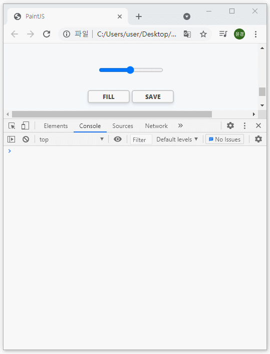 FILL ๋ฒํผ์ ํด๋ฆญํ๋ฉด PAINT ๋ฒํผ์ผ๋ก ๋ฐ๋๋๋ก ๋ง๋ ๋ค.