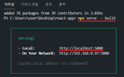 ํฐ๋ฏธ๋์ npm run build๋ฅผ ์ ๋ ฅํ๋ฉด