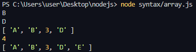 arr.push('E'); // ๋ฐฐ์ด์ ๋ฐ์ดํฐ 'E' ์ถ๊ฐ
