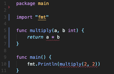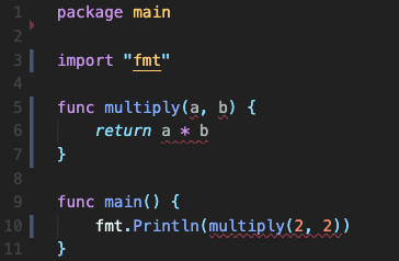func multiply(a int, b int) int { // (a, b int) ๋ก๋ ๊ฐ๋ฅ