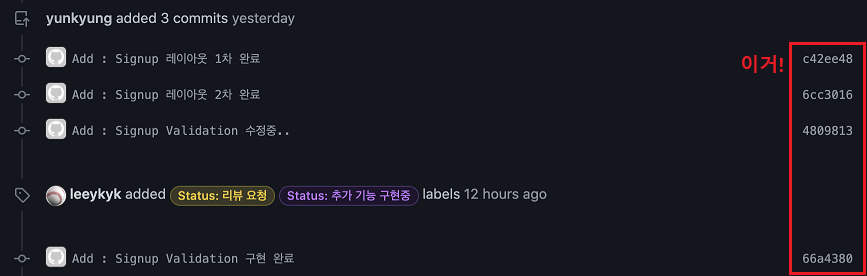 Github์ push๋ ํ์คํ ๋ฆฌ๋ฅผ ๋ณด๋ฉด ๋์ ์ฌ ์ํ๋ฒณ+์ซ์ ์กฐํฉ์ ์ฝ๋๊ฐ ์๋ค.