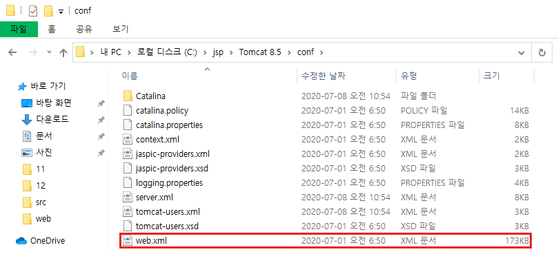 5. ์๋์ ๊ฒฝ๋ก๋ก ๋ค์ด๊ฐ์ web.xml ํ์ผ์ ๋ณต์ฌํ๋ค.