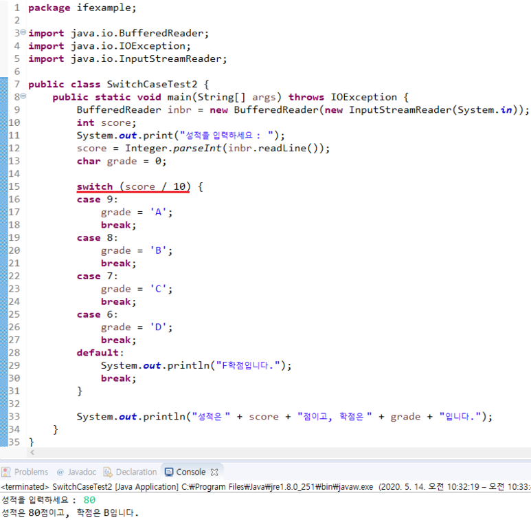 ๋ฌธ์ ) ์ฑ์ ์ ๋ฐ๋ผ ํ์ ์ ๋ถ์ฌํ๋ ํ๋ก๊ทธ๋จ์ if-else๋ฌธ์ผ๋ก ๋ง๋ค์ด๋ณผ๊ฒ.